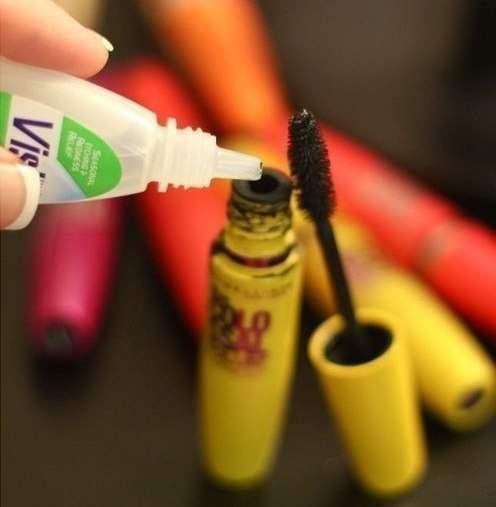 Если «несчастье» случилось с тушью, то остановитесь. Не стоит плевать в тюбик или (не дай Бог!) вливать спирт. Реанимировать тушь можно при помощи глазных капель. Но эту процедуру нужно делать вечером. Добавьте в тюбик несколько капель и оставьте его на ночь. Утром в ваших руках окажется просто идеальная тушь.
