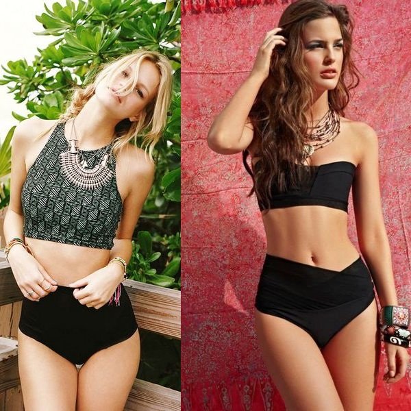 Ретро-стиль сейчас в моде, поэтому можно смело выбирать на лето раздельные купальники с трусиками, которые имеют высокую посадку. Чем выше посадка — тем лучше.