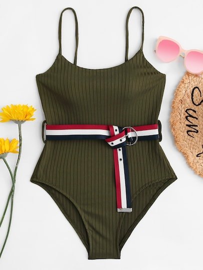 Ремень встречается и на слитных, и на раздельных купальниках. Он может повторять цвет модели или играть роль яркого акцента. Трендовые купальники «укомплектованы» тонкими и толстыми ремнями: вторые смотрятся интересней, особенно если с массивной контрастной пряжкой.