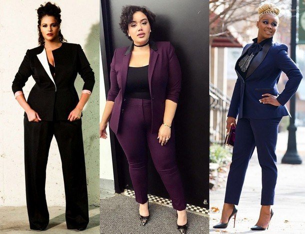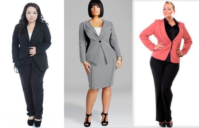 «Двойки» снова в моде и для худых, и для полных. Особенно деловой стиль подойдёт дамам с широкими бёдрами и небольшой грудью.