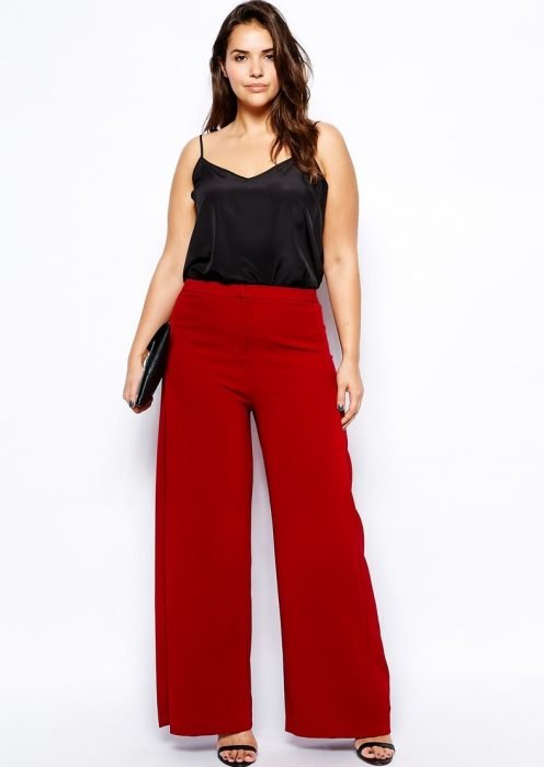 Палаццо подчеркивают бедра. Если эту зону нужно подкорректировать, то стоит выбирать модели, в которых клеш начинается примерно с середины бедра. Такие брюки делают фигуру пропорциональной, добавляют легкости.