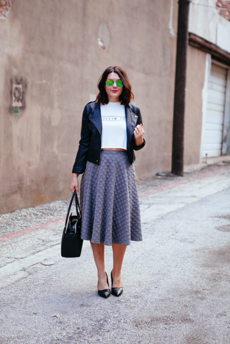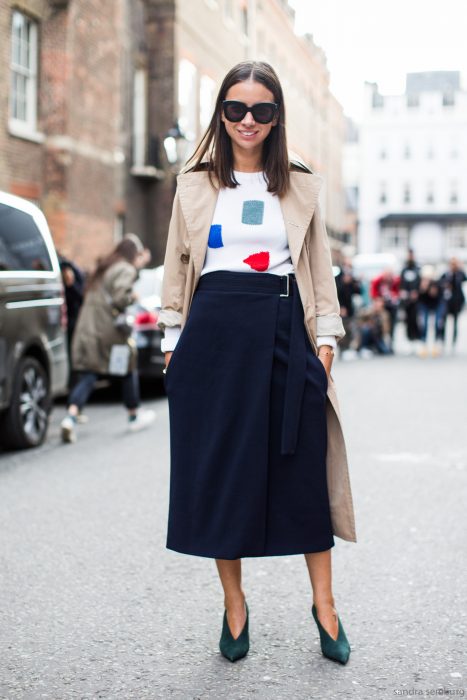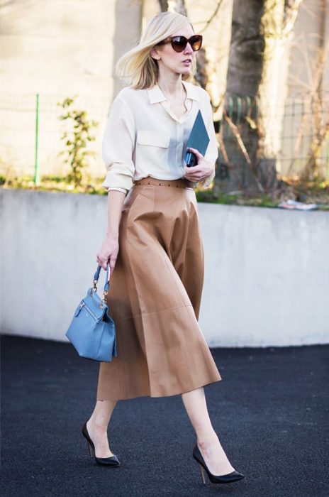 Длина миди считается самой женственной. Юбки до середины голени можно сочетать с футболками и рубашками, носить с каблуками и с плоским ходом — в любом случае образ получится нежным.