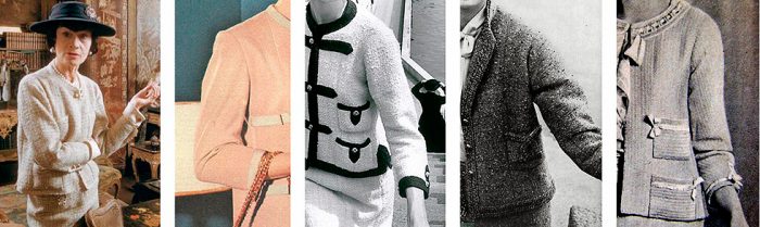 Коко Шанель явила миру жакеты-кардиганы свободного кроя длиной чуть ниже талии с узкими рукавами, широкой проймой и круглым вырезом горловины. Обычно края изделия окантованы тесьмой, а передняя планка — небольшими накладными прямоугольными карманами. Стильный и элегантный кардиган смотрится лаконично и женственно. В знаменитых твидовых костюмах, описанных выше, кстати, аналогичный фасон жакетов.