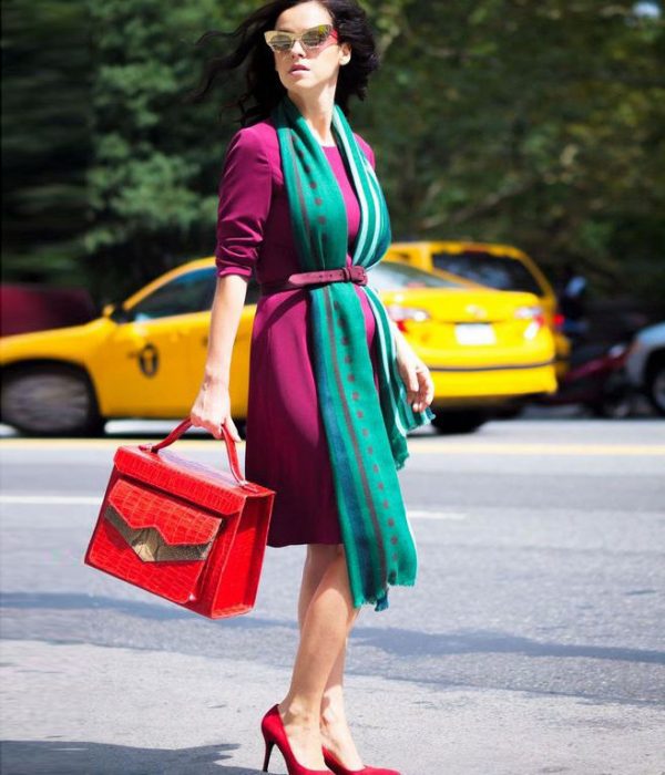 Выше мы уже говорили о вертикалях. Любые продольные полосы идут на пользу полным женщинам. Но не забывайте, что вертикали — это не только рельефы, рисунок на ткани или боковые вставки. Вертикалями могут стать любые элементы одежды или аксессуары. Например, шарфик, расстегнутые полы пиджака, ремешок сумки, длинные украшения.