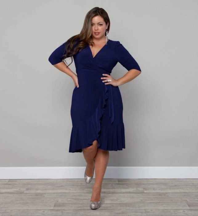 Одежда с запахом хорошо подходит полным женщинам. Такие платья, блузы, туники позволяют скрыть лишние килограммы и визуально удлиняют силуэт за счет вырисовывающейся углообразной линии. Еще одна полезная особенность этих нарядов — V-образная горловина. Она также удлиняет фигуру и отвлекает внимание от полноты в талии и бедрах.
