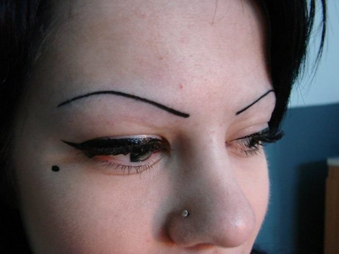 Такие брови выглядят очень нелепо. С «ниточками» ходили в свое время старушки. Поэтому не стоит с остервенением выщипывать брови, пока они не превратятся в едва заметные полоски.