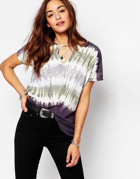 Если вы хотите быть в тренде этим летом, то обратите внимание на вещи с принтом «тай дай». В моду возвращается стиль 70-х, а значит – стиль хиппи. «Тай дай» – это узор, который хиппи создавали необычным способом. Одежду скручивали, перевязывали ниткой и бросали в краску. Затем доставали, развязывали и вуаля – яркие разводы на полотне готовы.