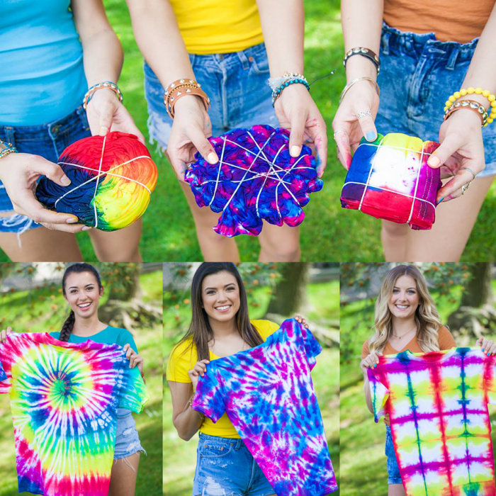 Чтобы обзавестись ультрамодной футболкой, необязательно искать модель с яркими узорами в магазине: можно купить белую базовую футболку и покрасить ее красками для ткани. Футболку сворачивают в жгут или спираль, обозначают резинками «отсеки» и красят. Плюс техники «тай дай» заключается в том, что плохого результата тут быть не может: обязательно получится что-нибудь интересное, даже если не то, что вы представляли себе вначале.