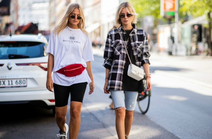 Очень стильно выглядит комбинация велосипедок и пиджака оверсайз. Единственное «но»: такое сочетание подходит только для прохладной погоды.
