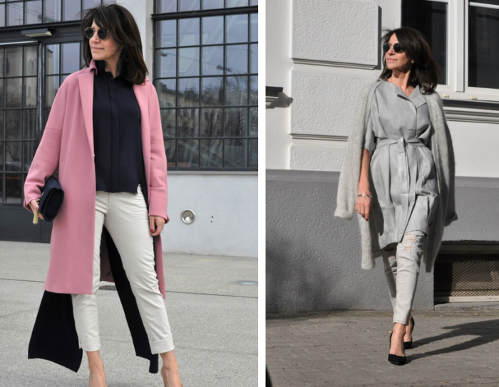 Разные фасоны пальто выглядят более женственно и элегантно, чем пуховики или куртки. Поэтому осенью и весной точно отдавайте предпочтение именно такой верхней одежде. Пальто, сидящее по фигуре, зрительно вытягивает силуэт и скрывает ее недостатки.