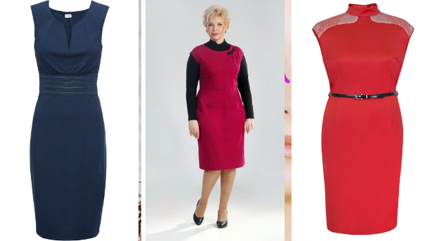 Полным дамам рекомендуется выбирать платья прямого кроя. От выреза лодочкой лучше отказаться: он «съест» шею. Если икры не массивные, носите зауженные книзу модели. Сочетайте с классическими лодочками и жакетами.