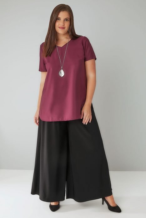 Модель считается универсальной. Отлично сидит на стройных длинноногих девушках. Визуально удлиняет фигуру миниатюрных женщин. Выравнивает ноги и добавляет объем, где его не хватает. Маскирует лишнее, где это нужно. Главное, подберите наиболее подходящую и удобную ширину, длину и посадку, подчеркивающую талию или бедра. Примерьте разные варианты, чтобы вычислить «свои» палаццо.