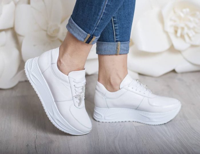Несмотря на то, что танкетка остается популярной, кроссовки на каблуке носить уже стоит. Если хочется прибавить себе рост, выбирайте модели на ненавязчивой платформе. Также актуальны классические белые кроссовки.