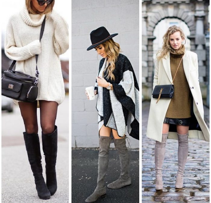Плотно прилегающие к ноге ботильоны-носки максимум до середины икры смотрятся неактуально. Им на смену пришли низкие ботинки, высокая обувь со свободным голенищем. Можно заменить «казаками» или сапогами до колена.