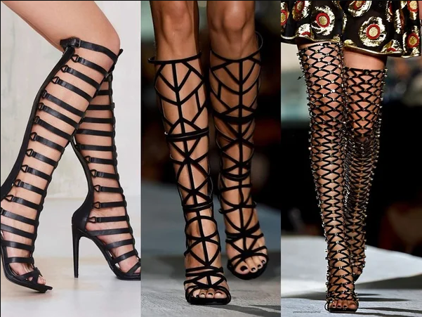 Кроме носа, не приветствуются вырезанные части в других местах, а также римские сапоги с тонкими многочисленными ремешками.