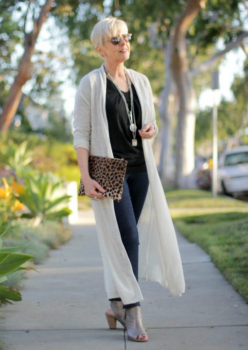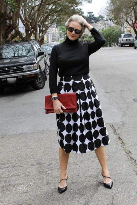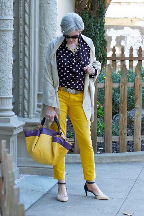 К 50 годам в женском шкафу обычно скапливается неприлично большое количество вещей черного цвета. Доходит до того, что дама появляется на людях исключительно в total black луках. Черный хоть и является универсальным цветом, однако чем больше его, тем мрачнее образ, а это старит.