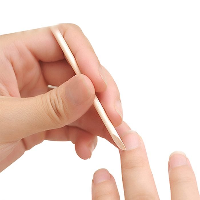 - Отодвиньте кутикулу пушером либо палочкой из апельсинового дерева.