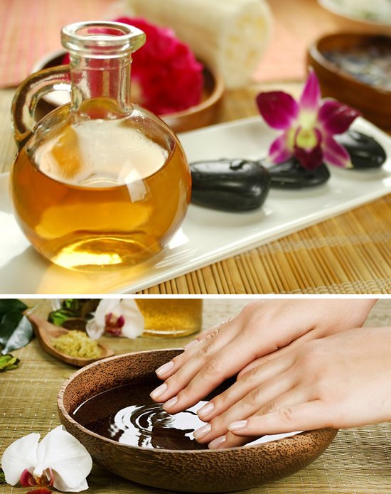 Если кутикула очень сухая и регулярно появляются заусеницы, то раз в неделю нужно делать ванночку с оливковым маслом. Его подогревают на водяной бане, а после держат в масле руки 10 минут. Если ваша головная боль — хрупкая ногтевая пластина, то следует делать ванночки с добавлением морской соли. После процедуры ногти станут крепкими и будут быстрее расти.