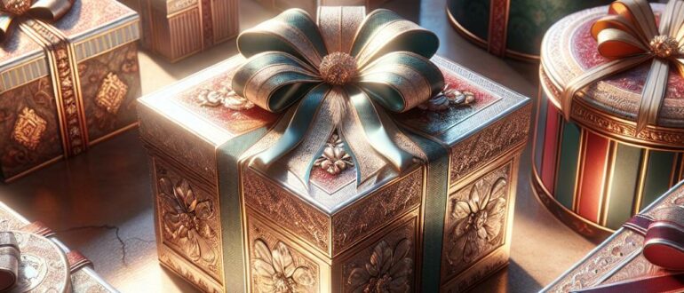 История подарочных коробок началась в конце XIX века, когда шотландец Роберт Гэйр изобрёл технологию производства складных картонных коробок. Он использовал специальное оборудование для вырубки и бигования. Благодаря этому