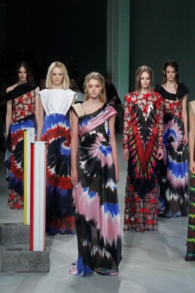 Дизайнеры предложили новое прочтение tie-dye. У Calvin Klein, к примеру, это не просто бездумные разводы по ткани, а узоры, стилизованные под укусы акулы. Дом Prada представил сумки с яркими размывами.