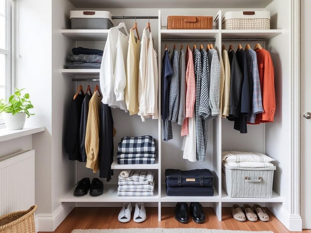 - Сезонность: храните только сезонные вещи под рукой, остальные — убирайте до следующего сезона.