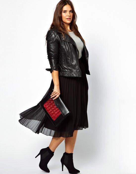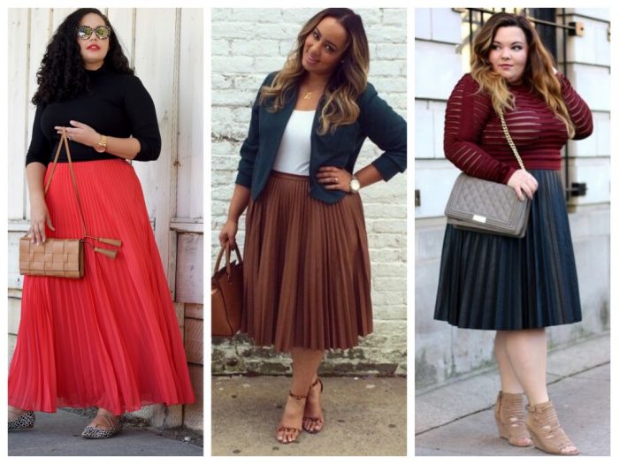 Как показывает практика, плиссированная юбка — универсальная деталь гардероба для женщин с любым типом фигуры. Полным девушкам с большой грудью, широкими плечами, но узкими бедрами (силуэт «перевернутый треугольник») юбка плиссе позволит буквально спасти ситуацию. Слегка расширяющийся книзу фасон сделает фигуру гармоничной, визуально приведя в баланс соотношение верха и низа.
