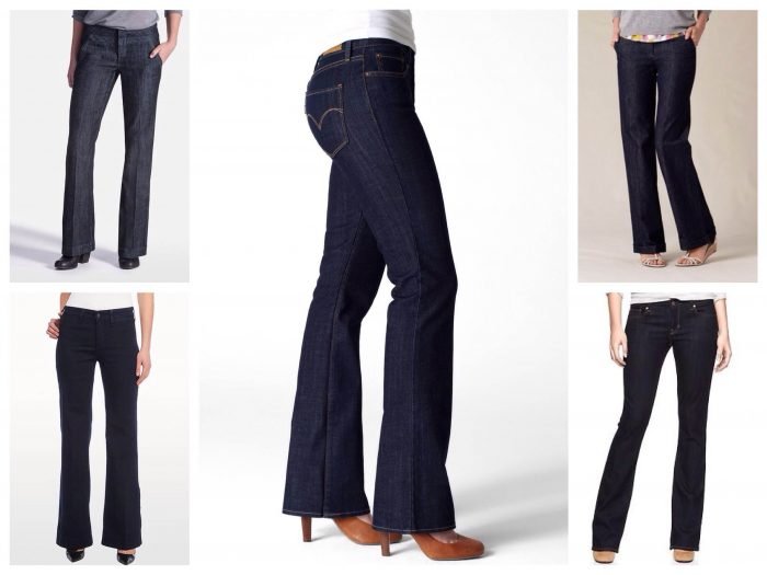 Стилисты рекомендуют выбирать джинсы со средней или высокой посадкой и расклешенные книзу (от бедра либо от колена). Эти модели подчеркнут пропорциональность и визуально удлинят ноги. «Песочным часам» можно обратить внимание на прямые классические джинсы. Хорошо вытянут силуэт модели, свободные в области бедер и немного зауженные книзу.
