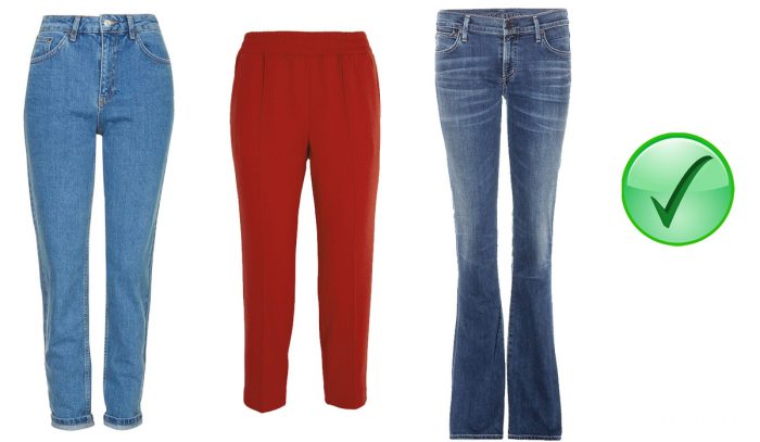 Откажитесь от ношения джеггинсов и скинни. Эти брюки только подчеркивают диспропорциональность фигуры.