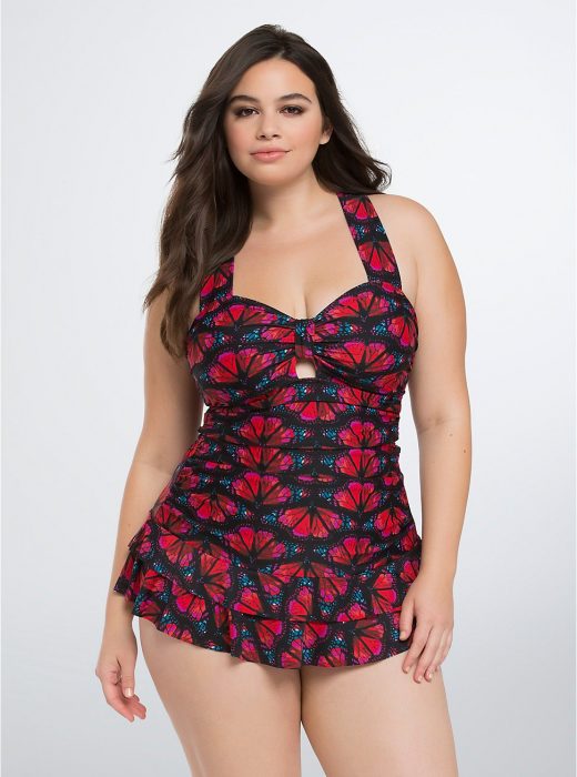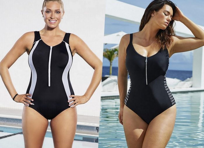 Современная пляжная мода благосклонна к девушкам с пышными формами. Необязательно идти на пляж в купальнике. Можете надеть платье. Свим-дресс — настоящая находка для полных женщин. В таком купальнике, внешне напоминающем очень короткое платье, можно и на солнышке полежать, и на волнах покататься, и на пляжную вечеринку сходить. Свим-дресс скроет от посторонних все проблемные места.