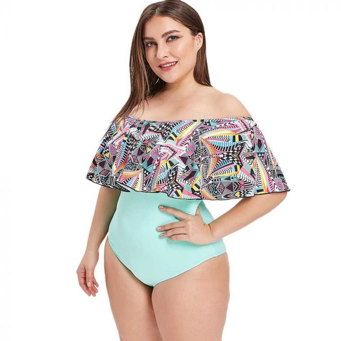 Полным девушкам с фигурой типа «груша» (когда низ более массивный) необходимо переносить акценты вверх. Слишком выдающиеся бедра, целлюлит можно замаскировать закрытыми высокими трусиками. Сместить внимание на верхнюю часть тела поможет и отвлекающий маневр в виде объемных широких завязок на шее, воланов и оборок на груди. Открытые плечи также отлично справляются с этой задачей.