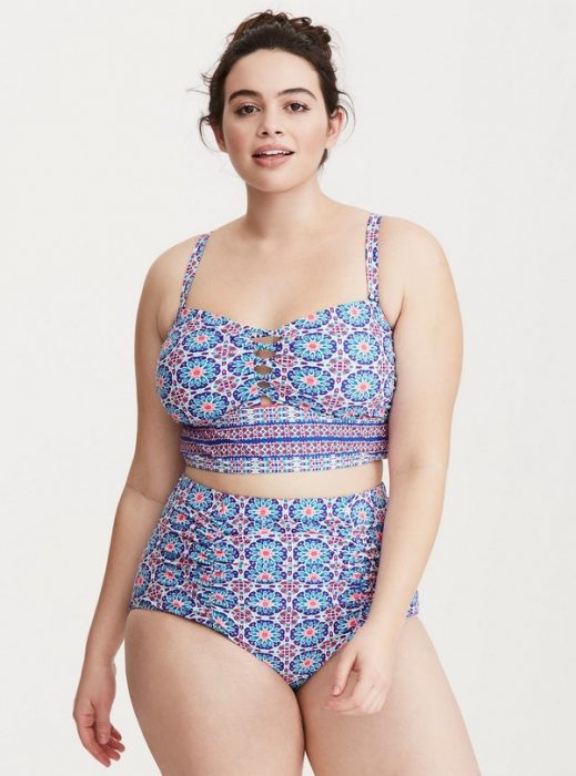 Девушкам с большой пышной грудью и узкими бедрами, стоит выбрать купальник с шортами вместо трусиков.