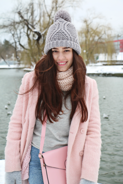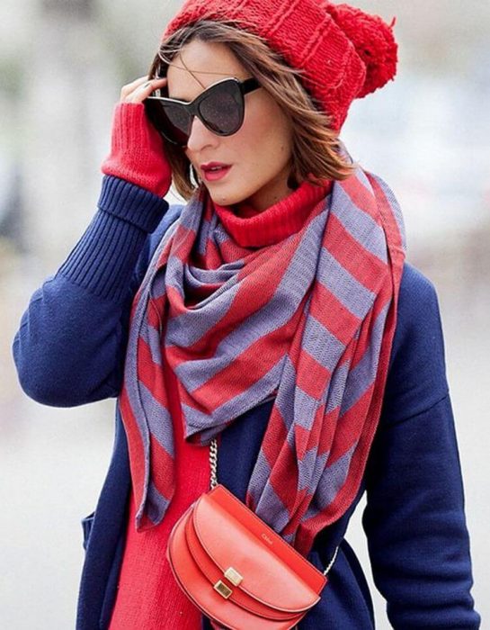 Безусловно, шапка и шарф должны сочетаться, но не настолько явно. Играя с цветами, можно комбинировать контрастные либо комплементарные оттенки, еще один вариант — надеть однотонную шапку с цветным шарфом.