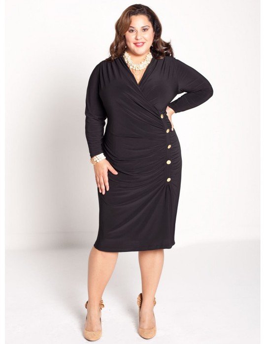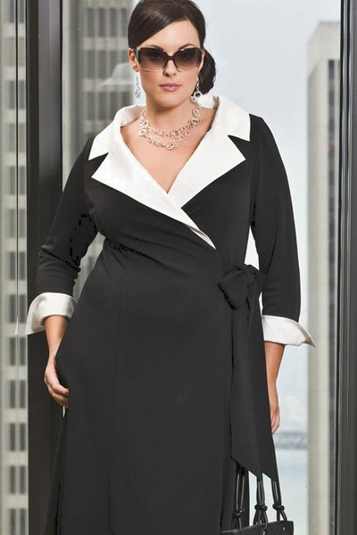 Необычайную элегантность придают пышным дамам платья с запахом. Они словно «вытачивают» фигуру.