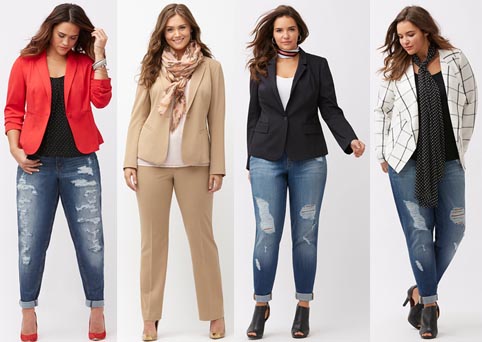 Отлично скроет лишние кило пиджак контрастного оттенка по отношению к блузке и брюкам. Только помните, что пиджак должен быть расстегнутым.