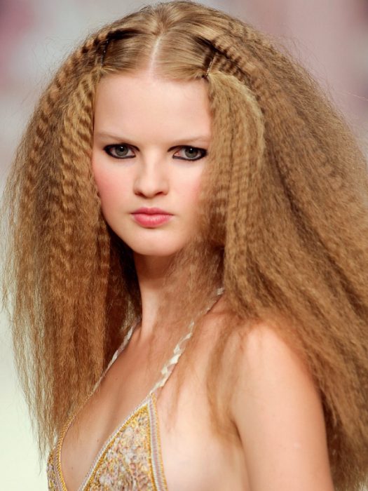 Вертикальные мелкие волны просто сводили с ума многих барышень лет 20 назад. В то время создать такие пряди было, ох, как непросто. Сегодня практически у каждой модницы обязательно найдется плойка, формирующая гофрированные пряди. И конечно, возникает невероятный соблазн воссоздать образ из молодости с вертикальными мелкими волнами. Но делать этого не стоит. Эти пряди уже не модны, а подчеркивать свой возраст и вовсе не стоит.