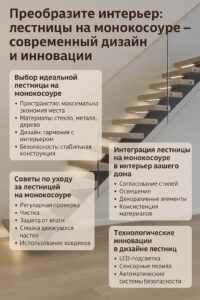 Выбор лестницы на монокосоуре требует внимания к нескольким ключевым аспектам. Это решение не только улучшит эстетику вашего дома, но и может добавить функциональность, если подходить к выбору обдуманно. Вот основные моменты, на которые стоит обратить внимание: