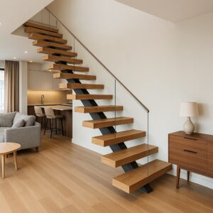 Почему стоит выбирать монокосоур? Этот вид лестницы отличается минималистичным дизайном и воздушной конструкцией, которая кажется плавающей в пространстве. Благодаря своей конструкции, лестница на монокосоуре может стать ярким акцентом в любом стиле от классики до хай-тека. Приглашаем вас узнать больше о том, как такая лестница может стать частью вашего дома и принести в него нотку элегантности и модернизма.