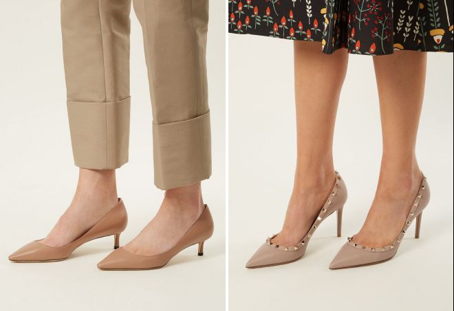 Если выбор пал на туфли, приобретите обувь бежевого цвета. Она смотрится как продолжение ног и визуально вытягивает фигуру. Высота каблука не имеет значение, выбирайте удобную.