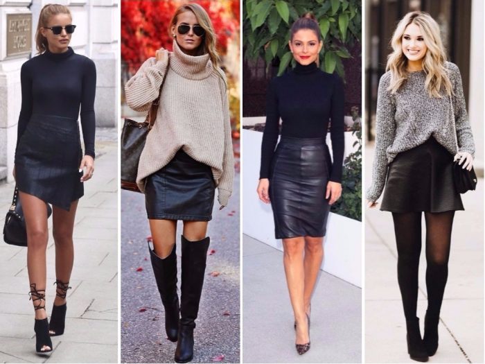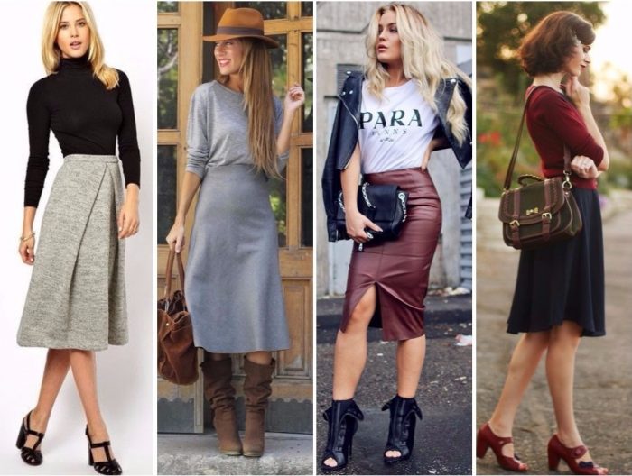 Отлично дополняют юбку блузки, футболки, водолазки, джемпера. Такую модель можно надевать под длинное пальто.
