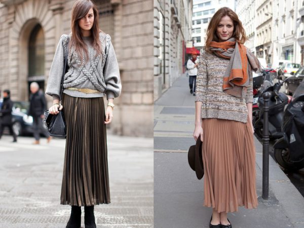 Поэкспериментируйте, сочетая несочетаемое. Плиссе гармонично комбинируется с джемперами, кожаными куртками, пальто.