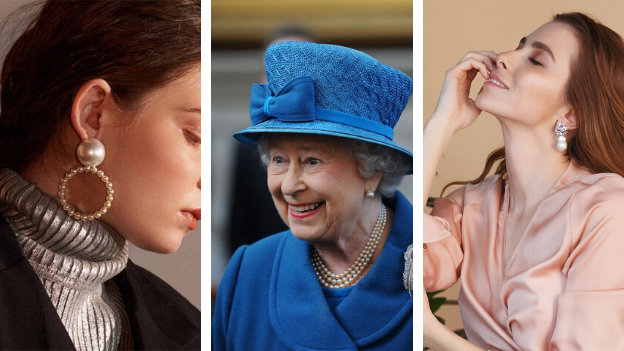 Жемчужные украшения гармонично сочетаются с деловыми костюмами, обувью с квадратным каблуком, строгими платьями-футлярами, темными оттенками без малейшего намека на принт. Уместен камень и в нарядах великосветских дам. Яркий пример — королева Елизавета, которую сложно представить без жемчужного колье.